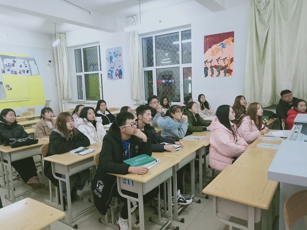 2019年12月2日晚6点。由光华英文传播社的沈明奇和陈文静两位同学,以激发该院学生学习英语的兴趣为宗旨,共同前往机械工程学院晚自习教室,针对不同的专业,带来不同的学习资源,进行传播分享。