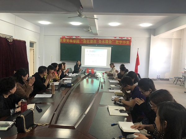 主旨发言结束后,公共外语部全体教师积极发言,并对“去水增金”的认识和途径发表了各自的看法,最后顾晓琳主任做总结性发言。截止到16时50分,本次教学沙龙画上完满句号。