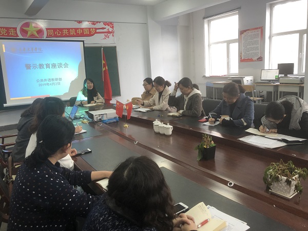 2019年3月29日,公共外语教研部按照学校纪检要求组织警示教育座谈会,会议由吴影主持。首先吴影主任进行了讲话。今天,廉政建设对我们每个干部提出了更新、更高的要求,即遵纪守法、廉洁奉公、勤政为民、不贪污受贿,不以权谋私。而有些人在欲望的趋势下逐步淡漠了法制观念,在权力观、金钱观、子女观面前丧失原则,利用职务之便做出有悖共产党员、人民公仆的原则和宗旨的事情,迈出了罪恶的一步,把自己送入了地狱之门,最终身败名裂,甚至是以生命做代价。教训是深刻的、令人心痛的,前车之鉴,后车之师,我们一定要引以为戒。