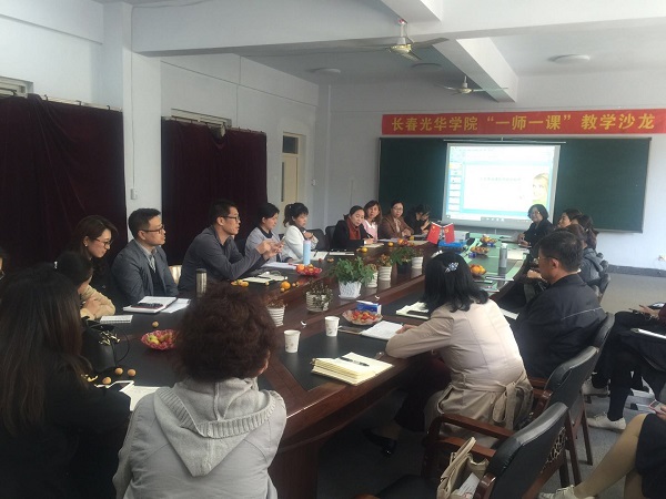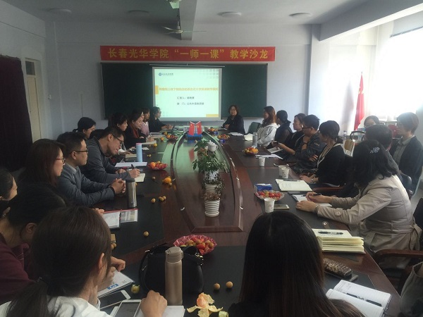 2018年9月25日下午13:30,在一教213举办了大学英语教学沙龙活动,部主任滕玉梅教授主持了活动,教务处肖萍萍处长、教发中心顾晓琳主任、教检中心孙莉萍老师、基础部主任王永学老师莅临了本次活动,外语学院部分青年教师以及公外部全体教师也参加了本次活动。