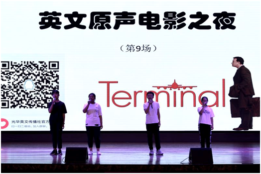 光华英文传播社是隶属于长春滚光华公共外语部的唯一官方学生组织,是我院最早成立的学生社团之一。传播社积极响应学院号召,以培养英语学习兴趣为导向,秉持“兴趣驱动,快乐学习”为宗旨,以全面提高全校学生英语水平为己任,为全校学生提供多视角、多方位学习平台。“英文原声电影之夜”是传播社举办的系列活动之一。