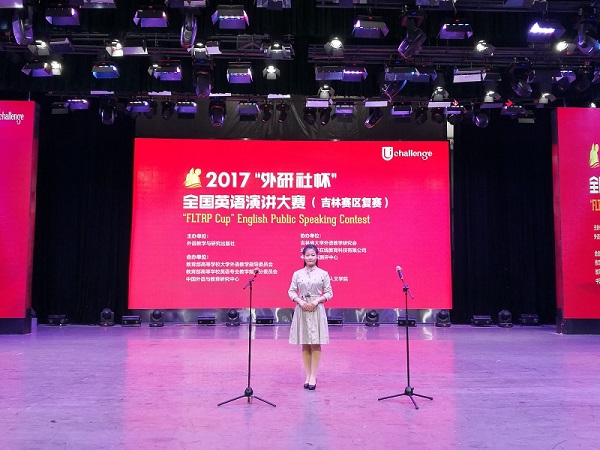 我校倪丹红同学在2017“外研社杯”全国英语演讲大赛吉林赛区复赛中荣获二等奖