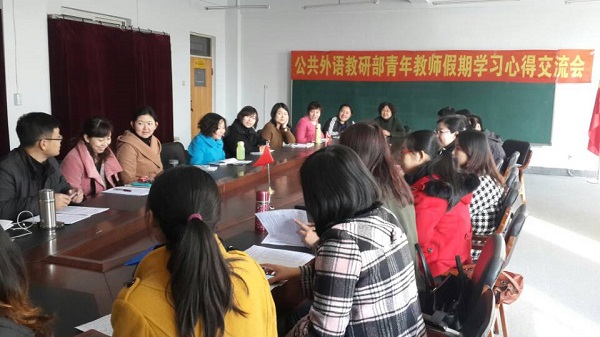 10月28日下午13时,公共外语教研部青年教师暑期学习心得交流会在第一教学楼213室进行,于福副校长、公共外语部主任滕玉梅教授及全体专职教师参会。