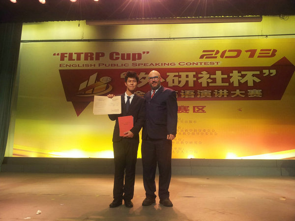 本次复赛分两轮进行,第一轮为3分钟命题演讲;第二轮为2分钟即兴演讲及2分钟即兴问答。命题演讲环节中,赵振凯同学凭借其流畅的表达、激情的演说赢得评委一致认可,最终以第11名的成绩成功入围16强,获得进入即兴演讲环节的资格。即兴演讲环节,他围绕所选题目,进行精准分析,深刻阐述,表现出其扎实的英语语言基础及良好的思辨能力,最终以第4名的优异成绩获得一等奖(获得比赛前3名的选手分别来自吉林大学,吉林师范大学及东北师范大学)。